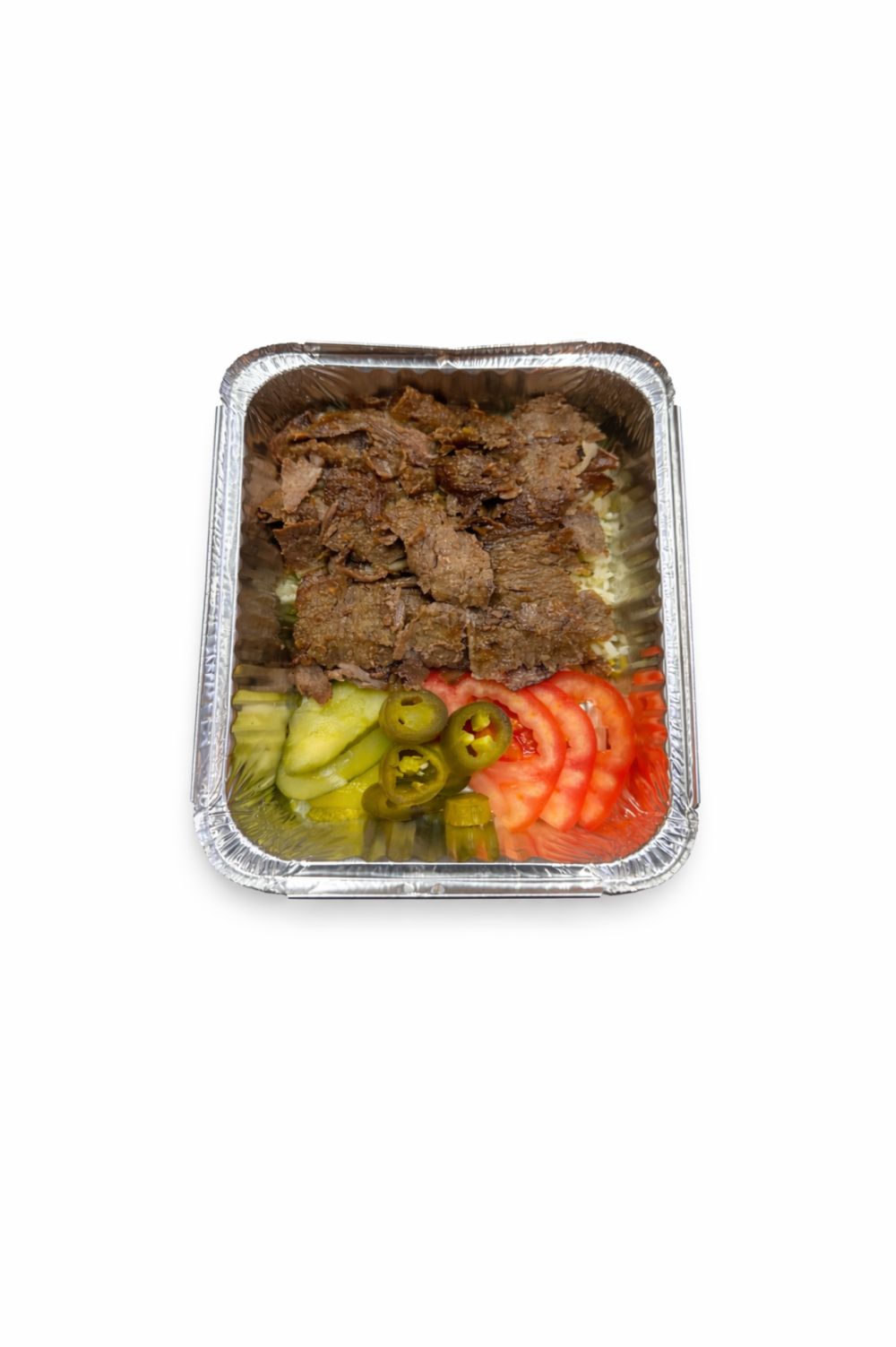 Гуруч, Мол гўшти, Томатли соус, Помидор, Халапеньо, Тузланган бодринг
